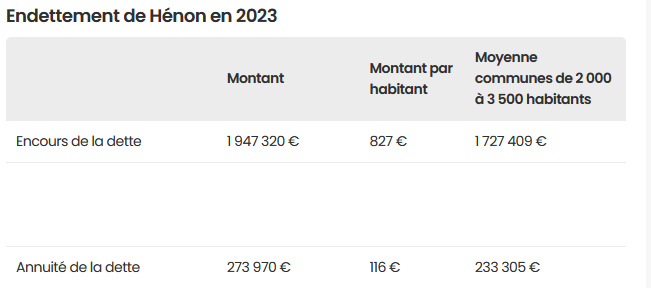 Comparativement à des communes de taille identique, Hénon reste très endettée et avec le chantier tardif de l’église de Hénon, il faudra être très ingénieux et inventif pour trouver des solutions.