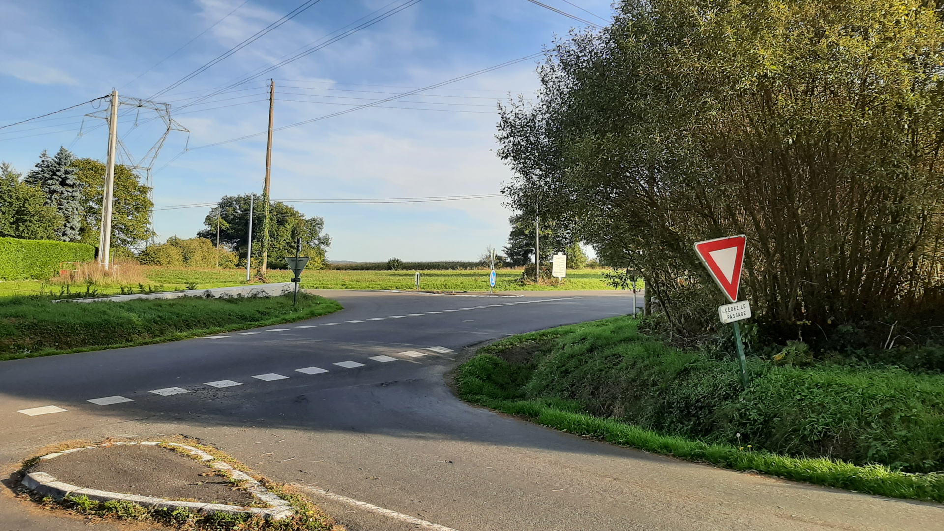 Sur l’axe Hénon Bréhand très emprunté matin et soir vers Lamballe, après bifurcation avant Beau Soleil, on arrive à ce carrefour avec la RD1 vraiment mal foutu et dangereux! Personne n’a pensé dans le cadre de l’aménagement foncier à faire un rond point par exemple et à aligner les 2 routes!